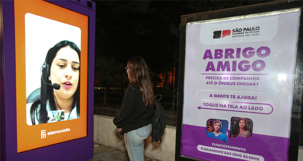 O projeto Abrigo Amigo, parceria do Governo de SP com a empresa de mídia digital Eletromidia, recebeu 1.587 chamadas solicitando companhia no primeiro ano de funcionamento. Só em 2024, foram 939 acionamentos. A iniciativa oferece apoio a mulheres e outras potenciais vítimas de violência em pontos de ônibus da capital paulista.