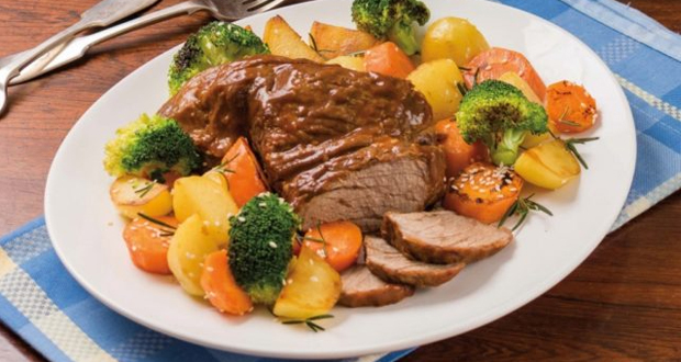 Modo de Preparo dos Legumes: Em uma frigideira grande, aqueça um fio de azeite com a manteiga. Acrescente os vegetais, o alecrim e o gergelim. Tempere com sal a gosto. Sirva a carne fatiada com os legumes.