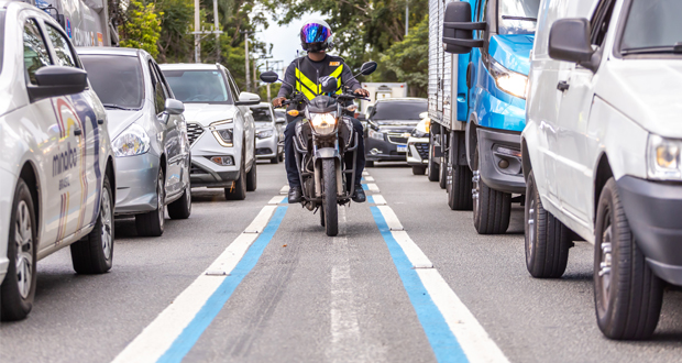 O número de óbitos de motociclistas nos trechos de vias com Faixa Azul teve uma redução de 47,2% de 2023 para 2024, de acordo com dados do Infosiga, sistema estadual de monitoramento da letalidade no trânsito, divulgados na sexta-feira (17). O número absoluto caiu de 36 mortes em 2023 para 19 no ano passado.