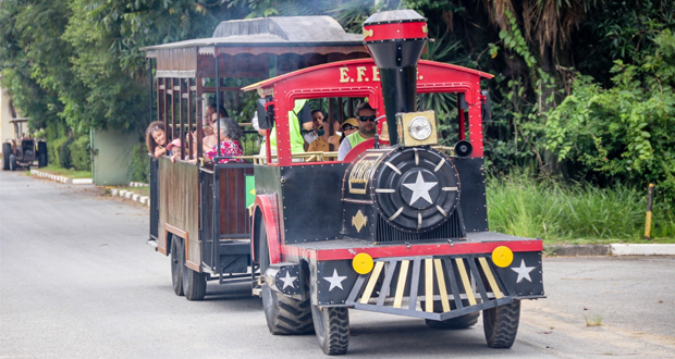 O trenzinho tem capacidade para 35 pessoas e funciona das 10h às 18h, com duração de passeio em média de 20 minutos por grupo. O preço por pessoa é de três tickets. Os pequenos com idade entre 3 e 8 anos se divertem com os infláveis e cama elástica. Os brinquedos custam a partir de R$ 10, com opção de combo contendo dez tickets por R$ 80.