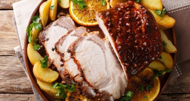 Modo de Preparo do Filé Suíno: Ponha a carne em uma superfície, polvilhe o sal grosso e metade das folhas de tomilho, espalhe por cima o açúcar, apertando firme.Aqueça uma chapa de ferro fundido grande até que uma gota de água jogada na superfície evapore imediatamente e chie. Coloque, com uma espátula grande, o filé mignon na chapa com o açúcar virado para baixo. Cozinhe sem mexer por uns 5 minutos. Se o açúcar começar a queimar, abaixe o fogo e, se precisar, ponha mais açúcar. Espalhe na mesma chapa, mais para o canto, uma colher (sopa) de açúcar e ponha as rodelas de laranja. Deixe uns minutos e vire as rodelas.Vire a carne, para dourar todos os lados, o que deve levar mais uns 15 minutos. Passe a carne para uma tábua de cortar e deixe descansar por 10 minutos, coberta com papel alumínio, sem apertar, antes de cortar. Tempere com sal e o restante das folhas de tomilho e ponha na travessa de servir, acompanhando com as rodelas de laranja.