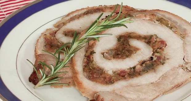 Modo de preparo: Preaqueça o forno a 180ºC. Lave e seque o lombo. Em uma tigela, misture o suco de limão, o vinho, o alho, o gengibre, o sal e a pimenta-do-reino. Despeje sobre o lombo e deixe marinar por 2 horas no refrigerador. Enquanto isso, em um processador de alimentos, triture as tâmaras até obter uma pasta. Acrescente a castanha-do- pará, o bacon e a salsinha e misture bem. Reserve.