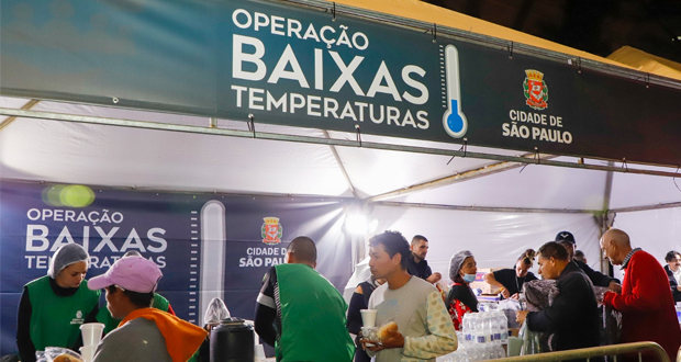 A Operação Baixas Temperaturas (OBT) é acionada quando a temperatura atinge 13 °C. As tendas funcionam das 18h à 0h e oferecem alimentos como sopa, pão, chocolate quente, chá e água, além de cobertores. Orientadores do Serviço Especializado de Abordagem Social (SEAS) atuam nas tendas, oferecendo acolhimento na rede socioassistencial da Prefeitura de São Paulo, a maior da América Latina, com mais de 26 mil vagas distribuídas em 380 serviços, como hotéis sociais, centros de acolhida e Vilas Reencontro. Durante o período da operação, também será oferecido atendimento em quatro Centros Esportivos da Secretaria Municipal de Esportes e Lazer (SEME), com pernoite, banho e refeições.